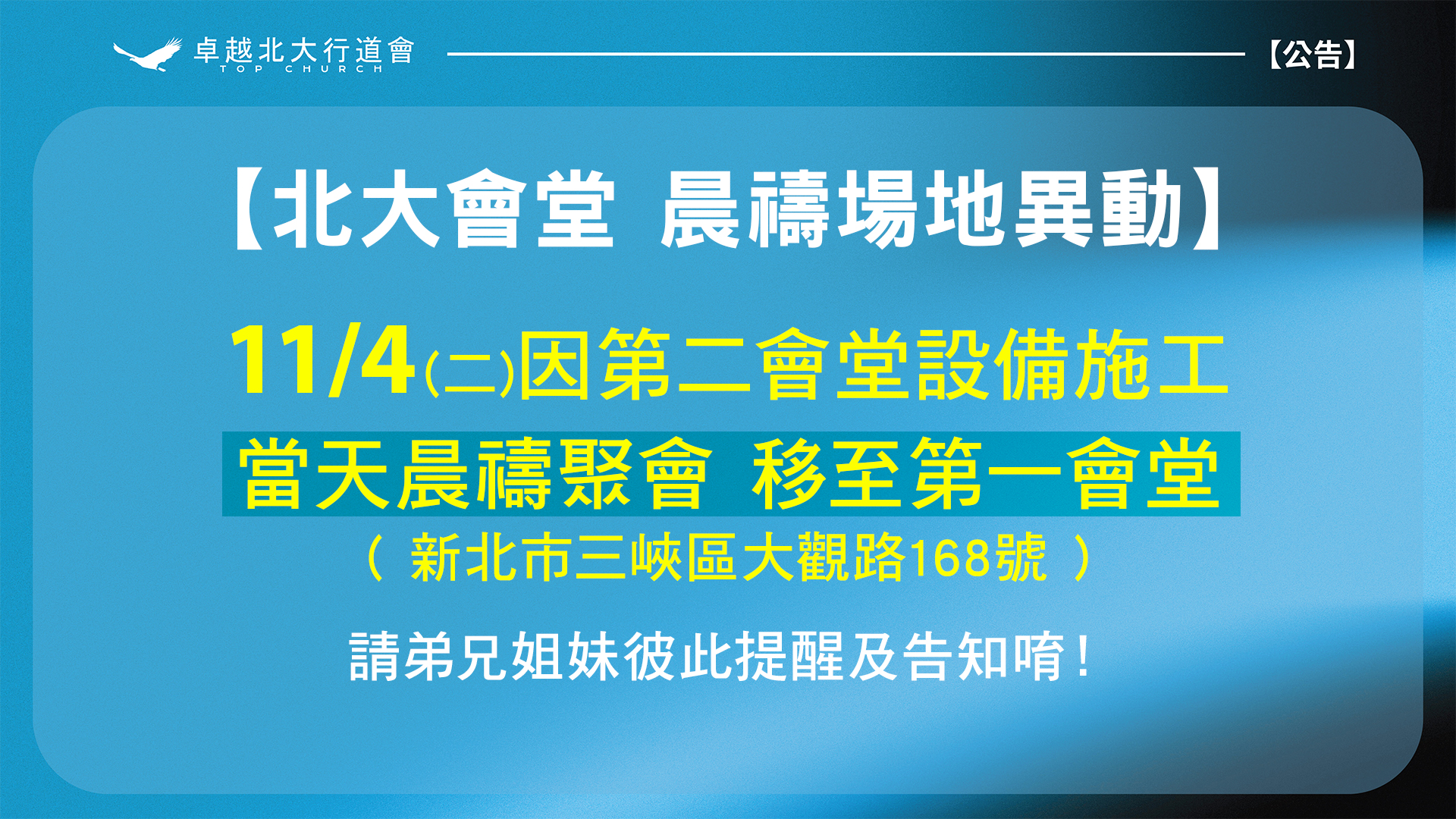 11/4晨禱場地異動