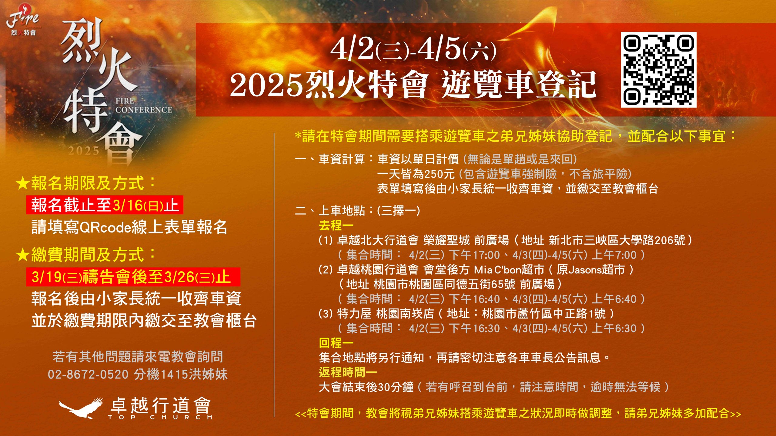 烈火特會遊覽車登記