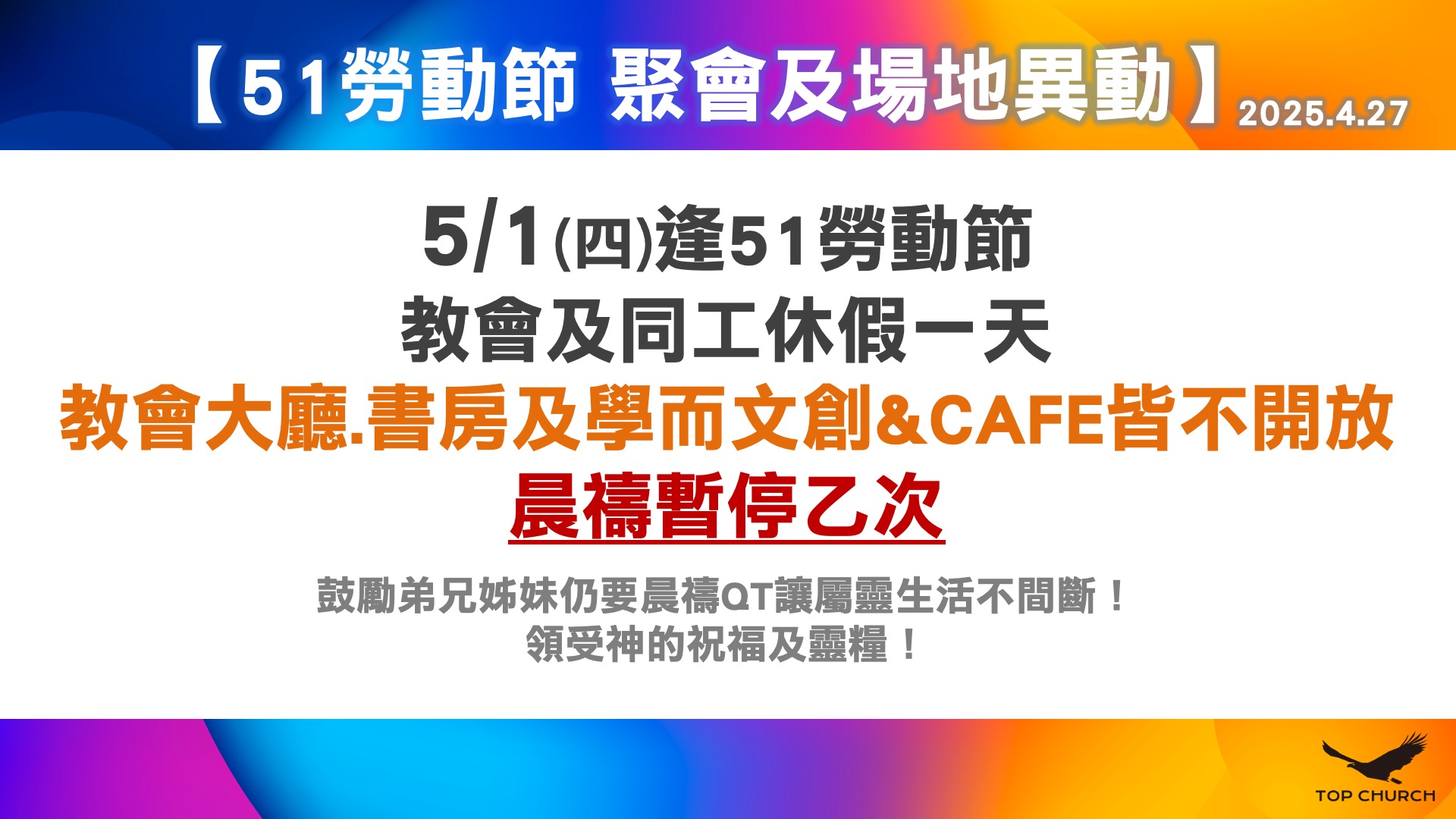 20250501 勞動節-聚會及場地異動
