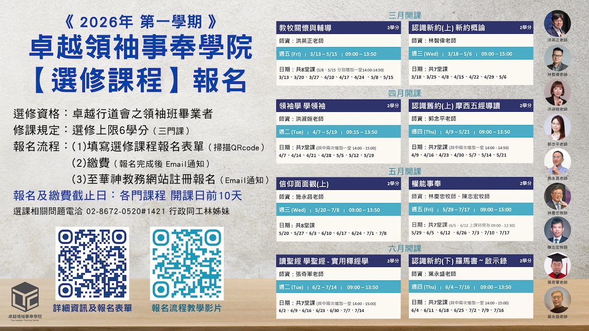 2026第一學期-卓越領袖事奉學院【選修課程】報名EDM